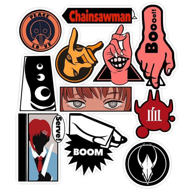 استیکر لپ تاپ و موبایل گوفی طرح لوگو انیمه مرد اره ای کد 194 مجموعه 11 عددی