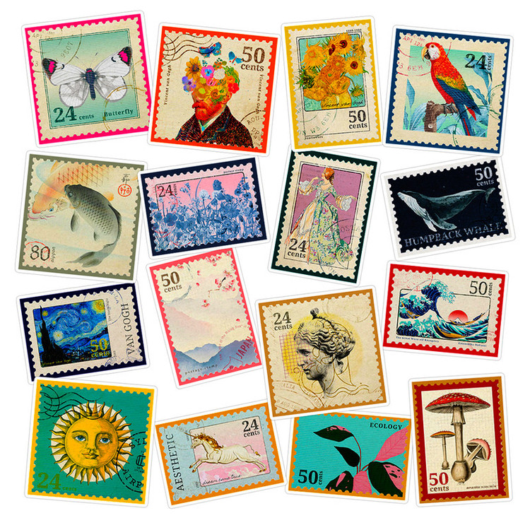 استیکر لپ تاپ ماسا دیزاین طرح Postage Stamp کد COLS42 مجموعه 16 عددی