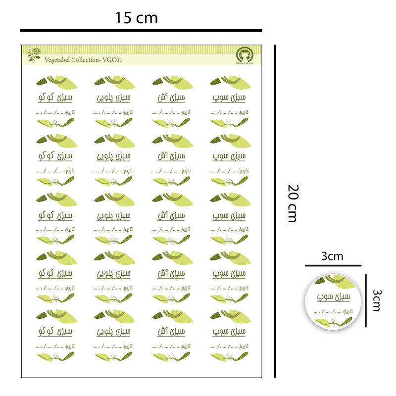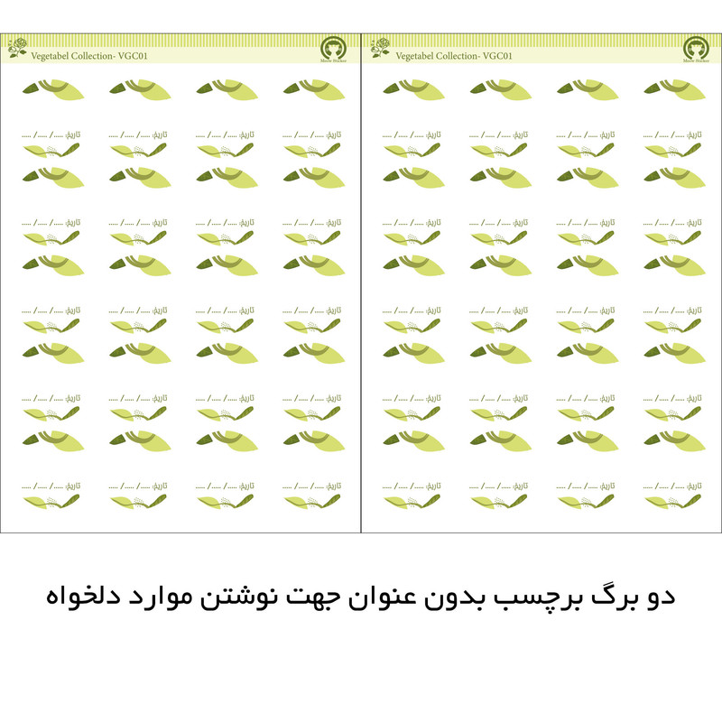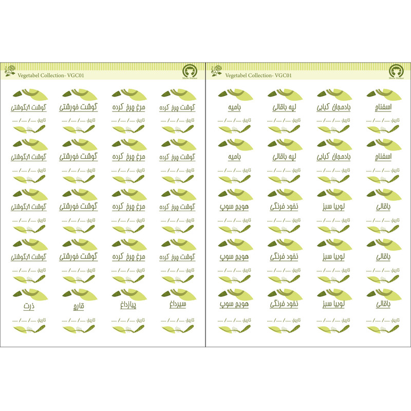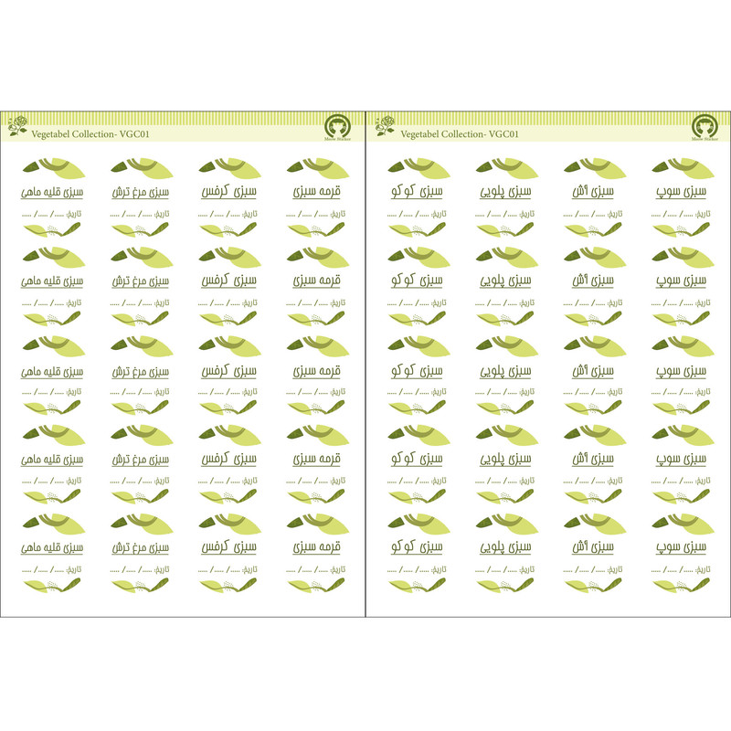 مجموعه 6 برگ شامل 80 عدد برچسب فریزری و 40 عدد برچسب بدون متن مناسب برای نوشتن نام سبزیجات و مواد غذایی که قید نشده اند.